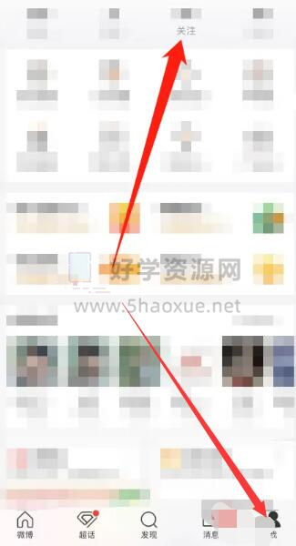 1、首先打开微博,点击右下角的我,然后点击关注选项。