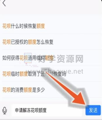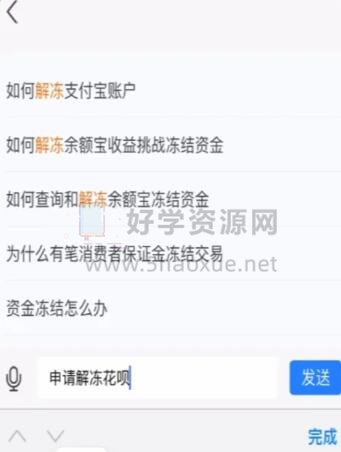 5、最后我们点击发送按钮,等待专属客服接受我们的花呗解冻申请。