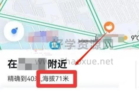 3、最后我们点击定位到指定位置,就可以看到显示的海拔信息,如图所示。