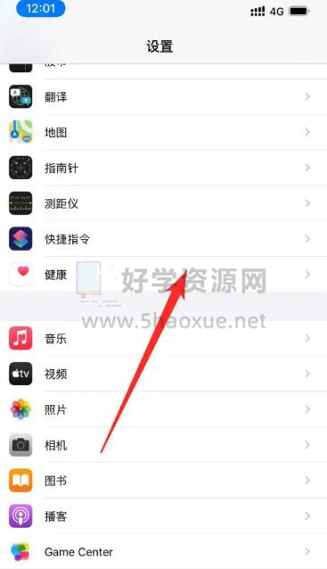 1、首先打开苹果手机设置,点击健康选项。