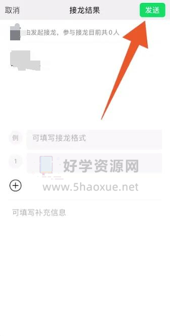4.最后我们输入接龙内容,点击发送即可在微信中发起接龙。