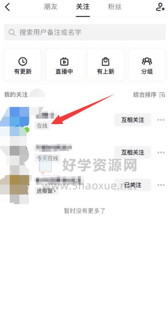 2、您可以在我的关注中查看对方在线状态,判断对方是否在使用抖音。