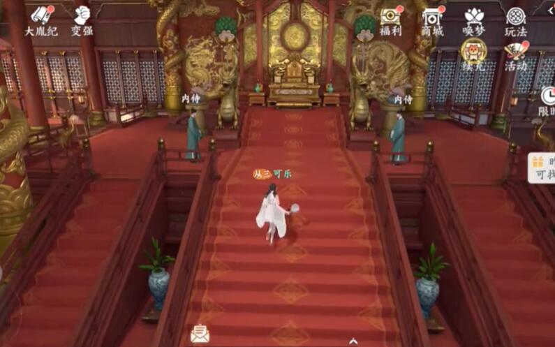 2、首先,玩家来到乾元殿上方的龙椅上。