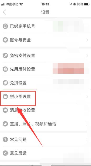 第三步:进入设置功能页面,点击【拼小圈设置】;