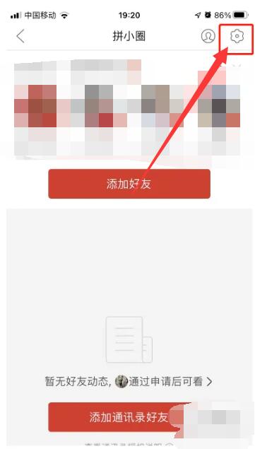第四步:切换到最新的拼小圈页面,点击右上角的【设置】功能;