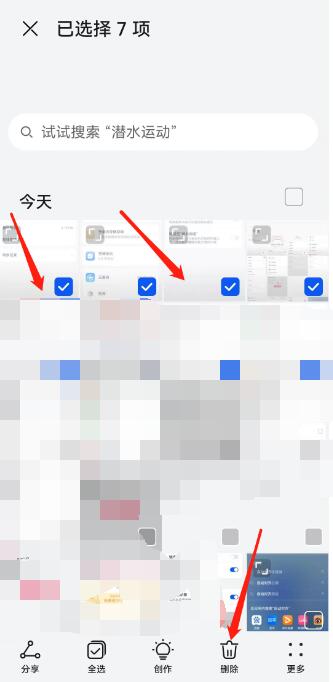 第六步:切换到图库页面,选择需要清理的内容,点击下方的【删除】功能;