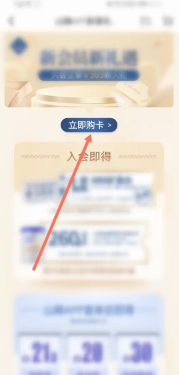 2、第二步:进入新页面,点击【立即购卡】功能,如下图;
