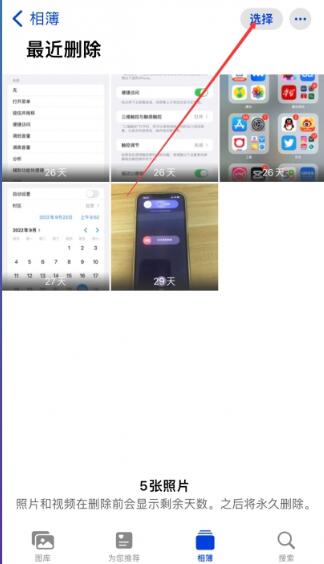 2、第二步:进入最近删除的页面,点击右上角【选择】;