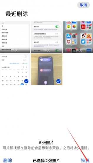 3、第三步:选择需要恢复的图片,点击右下角的【恢复】功能。