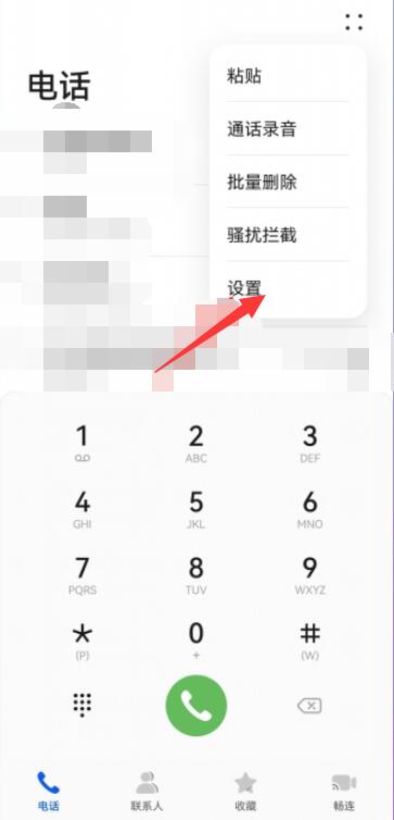 第一步:打开【电话】功能,点击拨号页面右上角的四点图标;
