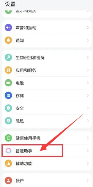 第一步:打开【设置】功能,选择【智能助手】进入;