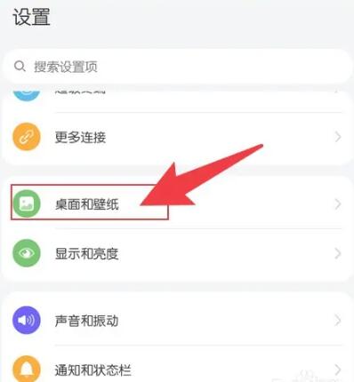 第二步:点击设置页面中的【桌面和壁纸】功能进入;