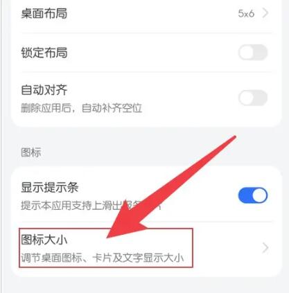 第四步:切换到新功能页面,点击【图标大小】进行调整。