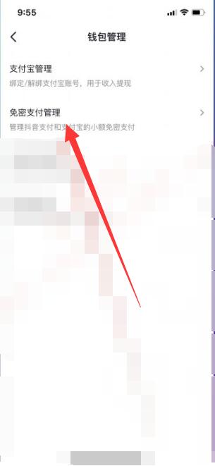 第六步:进入最新页面,选择【免密支付管理】点击进入并关闭。