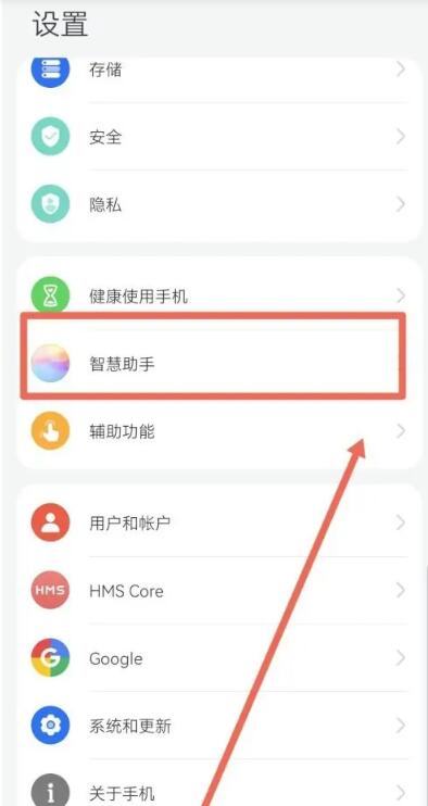 第一步:找到【设置】功能,打开,点击【智能助手】;