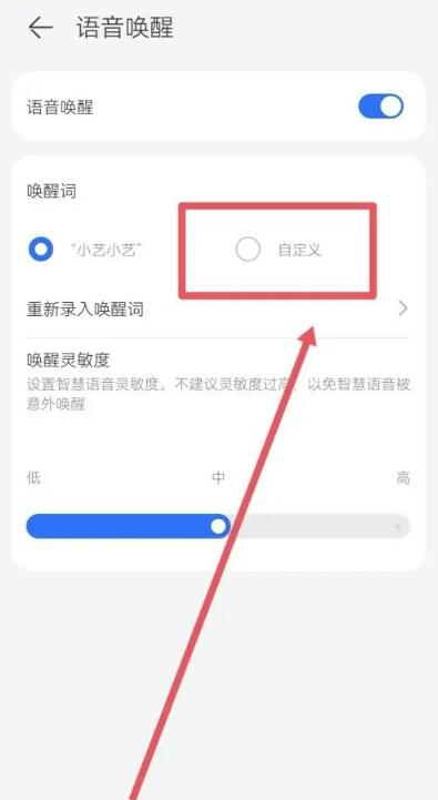 第四步:切换到语音唤醒页面,点击如下图的【自定义】功能进行修改。
