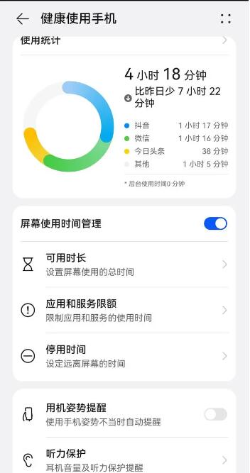 第五步:跳转到健康手机使用页面,调整使用时间。
