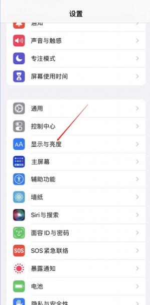 2、第二步:进入设置页面,选择【显示与亮度】功能;