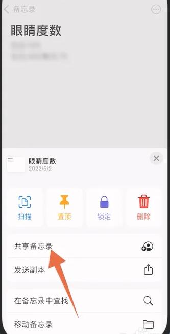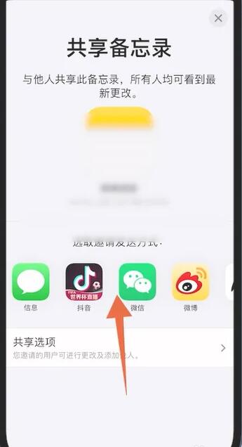 3、第三步:跳出小窗口,选择【分享备忘录】功能;