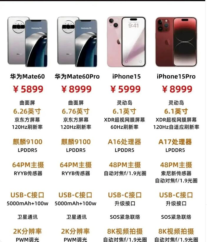 苹果15和华为mate60对比买哪个?近期,苹果15和华为mate60备受关注。这两款新手机都具有独特的功能。许多用户不知道应该购买哪一款。接下来小编为用户带来了苹果15和华为mate60的参数。比较分享,快来看看吧!
