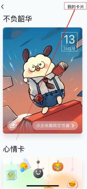 3、然后进入签到界面,点击右上角的【我的卡】功能;