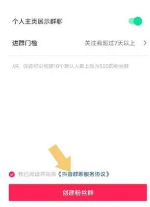 5、之后可以点击创建粉丝群,会自动弹出建群的相关协议;