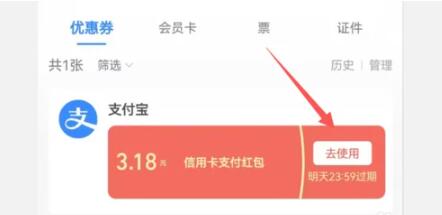 3、最后就可以使用支付宝优惠券里的红包了,点击使用即可完成。