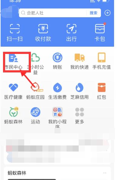1、首先进入支付宝APP,找到【市民中心】选项进入;