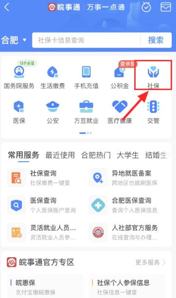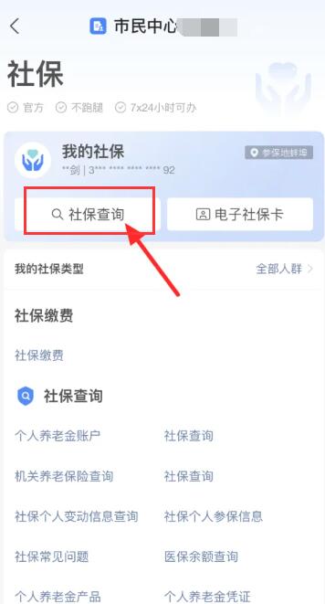 3、进入社保功能页面,点击【社保查询】进入;