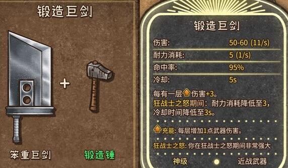 5.锻造巨剑(神级,近战武器):笨重巨剑+锻造锤