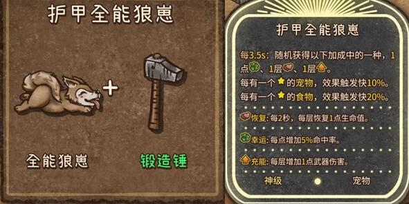 12、铠甲万能狼崽(神级、宠物):万能狼崽+锻造锤