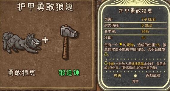 10.铠甲勇狼幼崽(神级、宠物、近战武器):勇狼幼崽+锻造锤