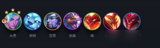 1.棋子构成:永恩、努努、亚索、迭嘉、慎、赫卡里姆、奥拉夫