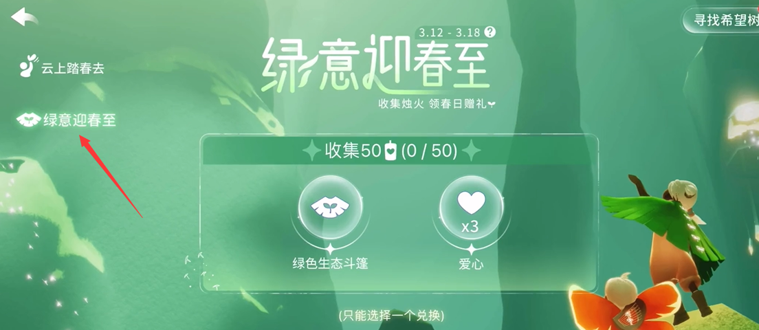 3、继续点击【绿迎春】,进入收集页面,获得50根蜡烛兑换披风;