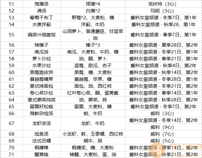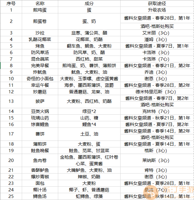 星露谷物语菜谱怎么获得? 《星露谷物语》中的烹饪玩法非常休闲轻松。玩家可以自由尝试不同的菜肴组合。许多玩家想要获得所有食谱,但不知道如何获得。小编为大家收集了这里的星星。 LuguTalk上的所有菜谱都可以方便参考,也有详细的菜谱分享。