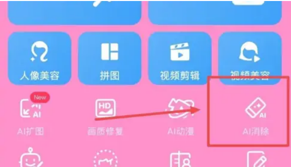 第一步:打开美图秀秀APP,选择首页下图箭头所示的【艾消除】;