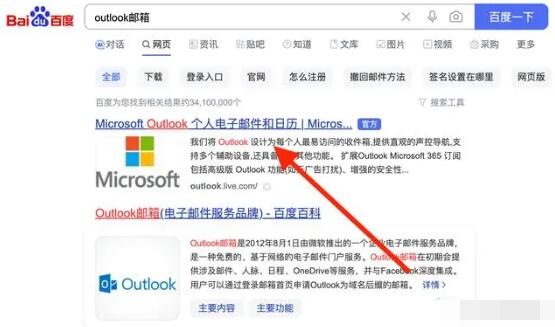 1、首先搜索Outlook邮箱,点击进入Outlook网站。