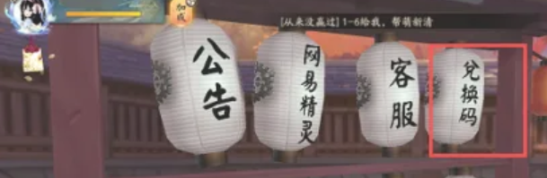 1、首先打开游戏进入主页面,选择许愿台上的【兑换码】灯笼;