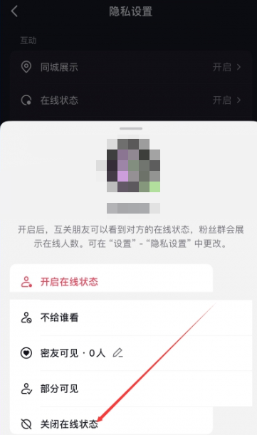 第五步:跳出小窗口,点击【关闭在线状态】。