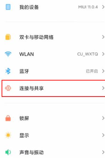 第一步:打开手机设置功能,进入页面,找到【连接与分享】选项;