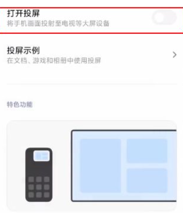 第二步:进入连接与共享界面,选择【打开屏幕镜像】并滑动后面的按钮;