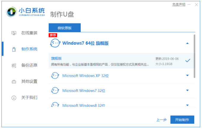 3、我们选择本次需要安装的系统版本,然后选择开始生产。