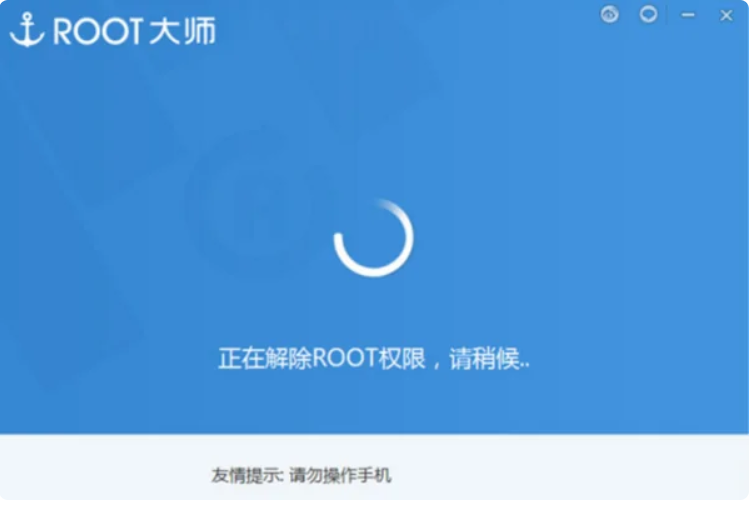 5、出现如下界面,显示“正在删除ROOT权限”。请耐心等待。可能需要很长时间,但切记不要拔掉数据线。