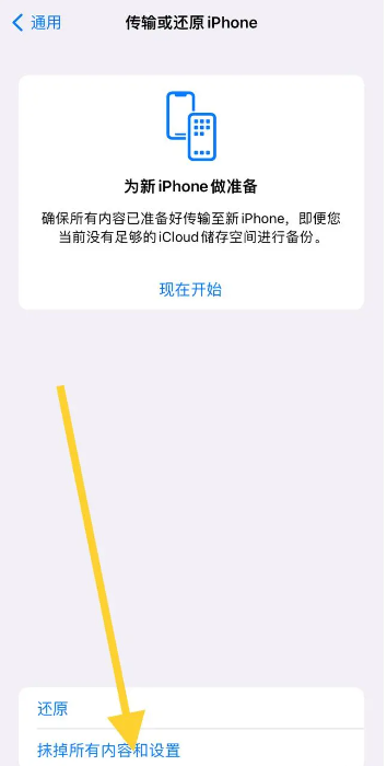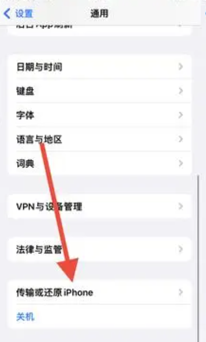 第三步:进入总页,滑动至底部,点击【传输或恢复iPhone】;