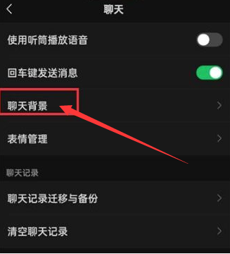 第四步:在聊天页面选择【聊天背景】功能;