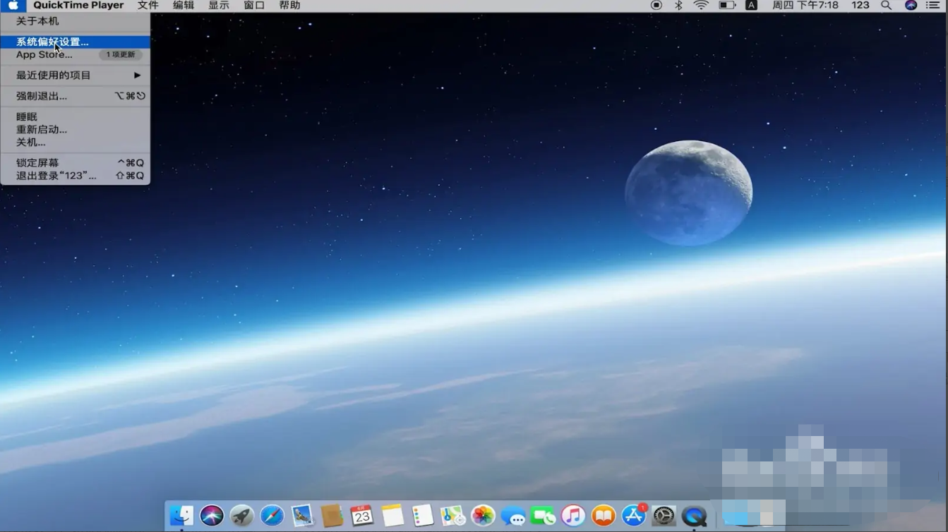 1.点击左上角的苹果图标,在弹出的下拉选项中点击系统偏好设置。