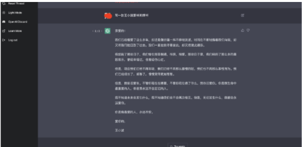 输入文本后,点击“生成”按钮,ChatGPT会根据选择的模型自动学习并输出生成的文本。