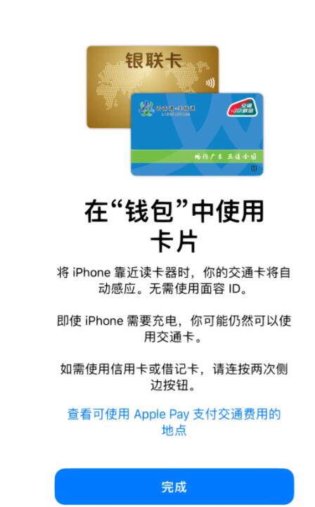 第一步:打开钱包软件,选择您所在城市的NFC地铁卡,点击底部【完成】边框;
