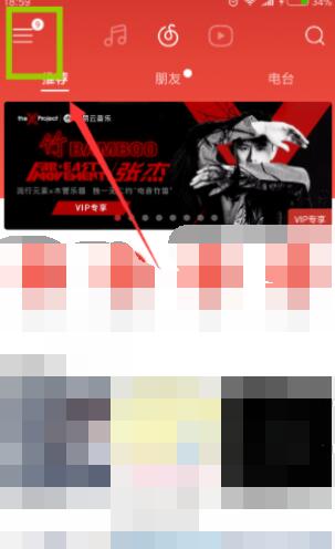 第一步:打开网易云音乐APP,点击首页右上角的三横线;