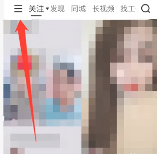 1、首先打开快手APP,看到主界面左上角有【三横线】图标;